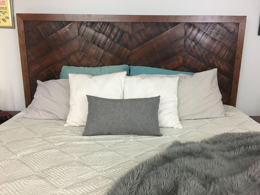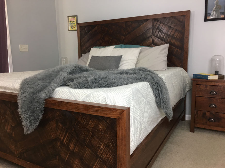 The Haywood King Bed makes a statement with a rough-sawn, chevron patterned headboard and footboard. A bold form meets rustic character in this bed, bringing rough textured an updated look.